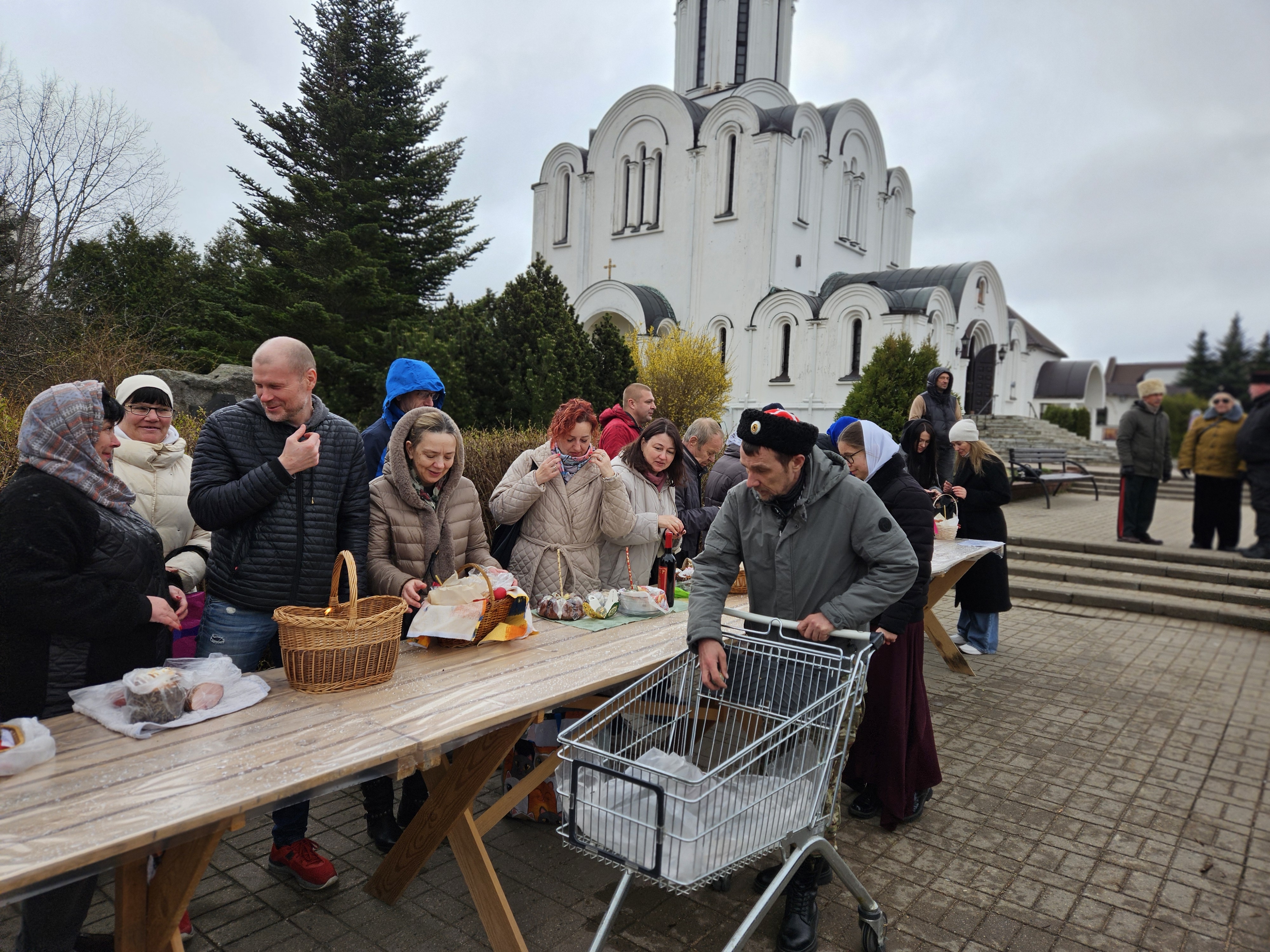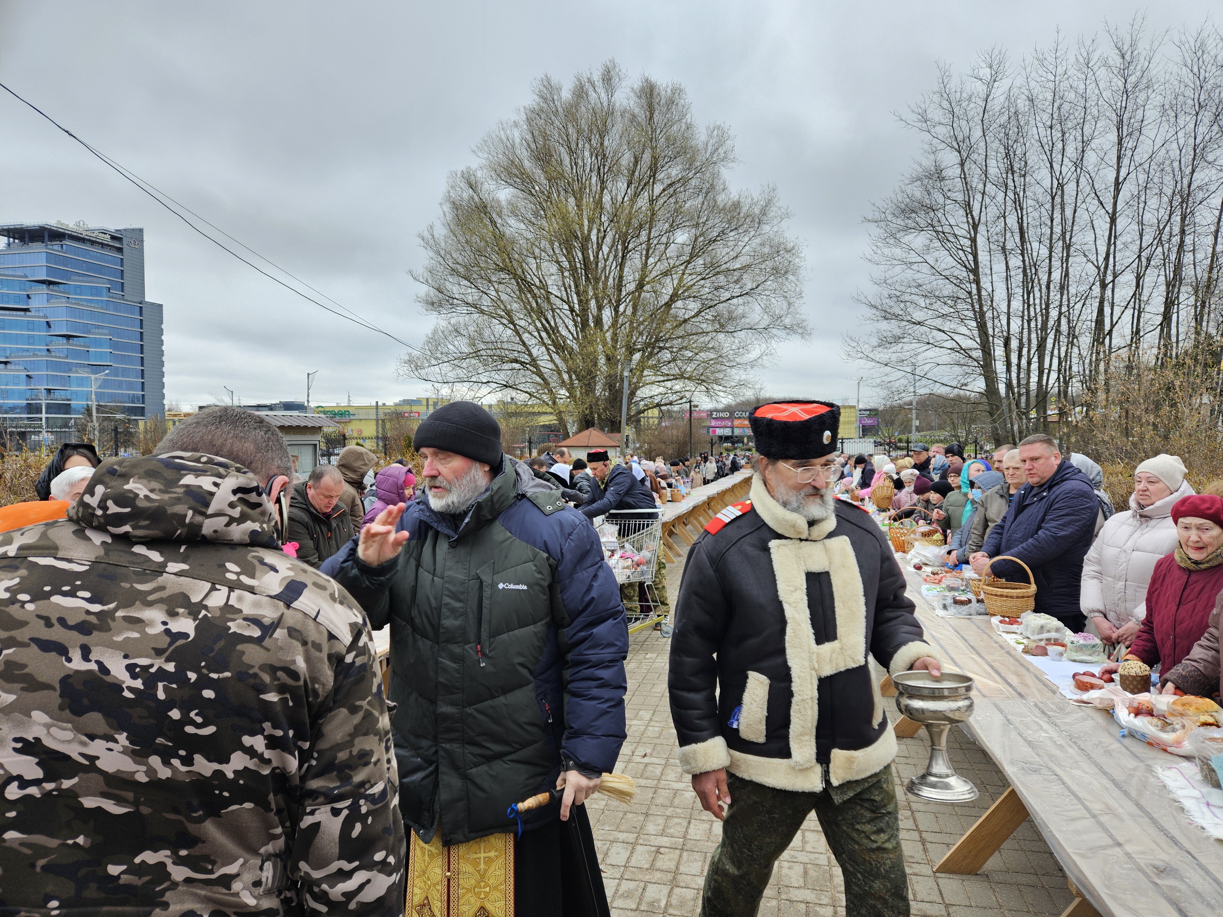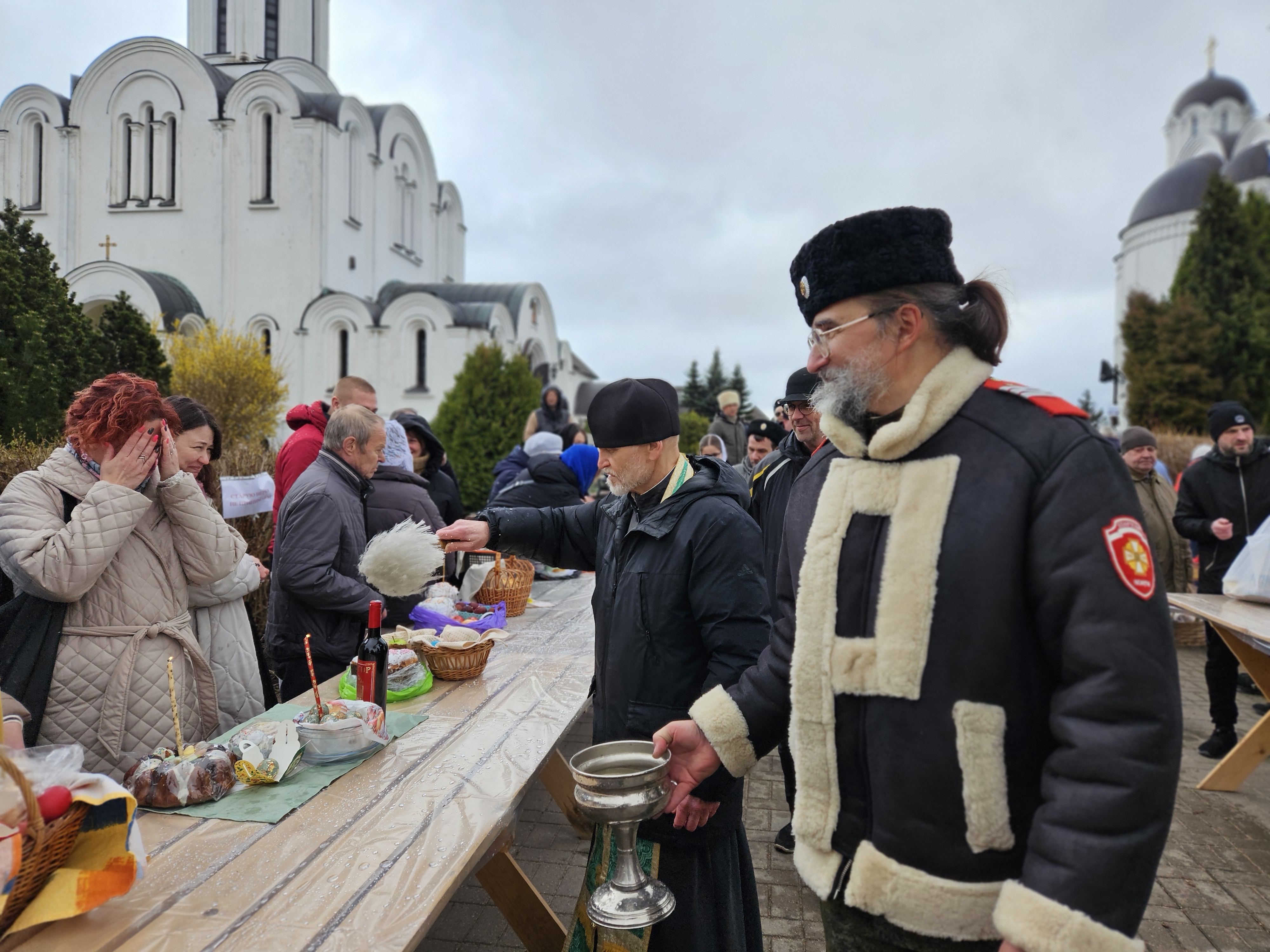 В Великую субботу послушание казаков вот уже почти четверть века – не меняется – помощь в освящении пасхальной снеди. С этой задачей казаки, служба охраны прихода и волонтеры успешно справлялись более 11 часов подряд, меняя друг друга.