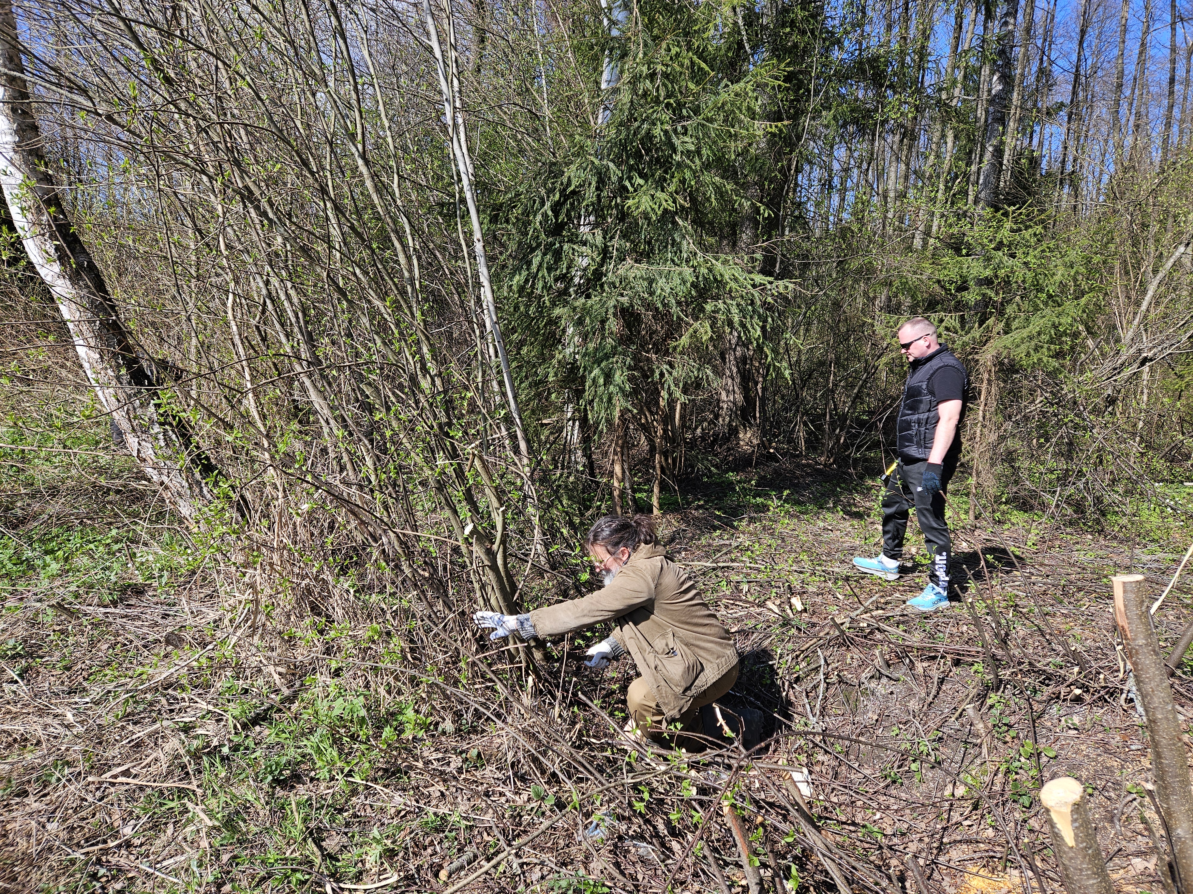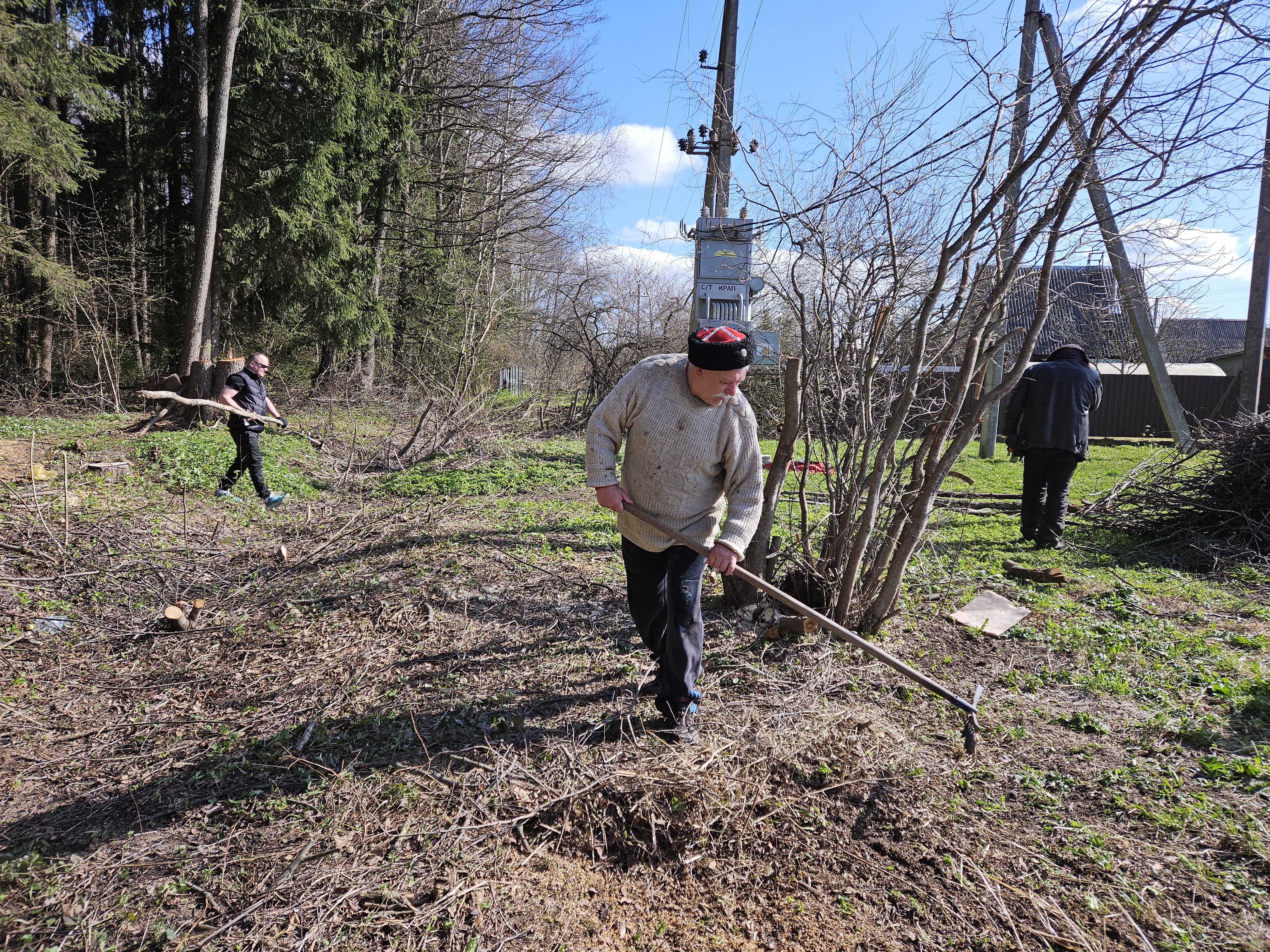 Казакам предстояло провести работы по подготовке часовни к новому сезону: расчистка прилегающей территории от листвы, вырубка дикорастущего кустарника и лозы, покраска поклонного креста и других обьектов.