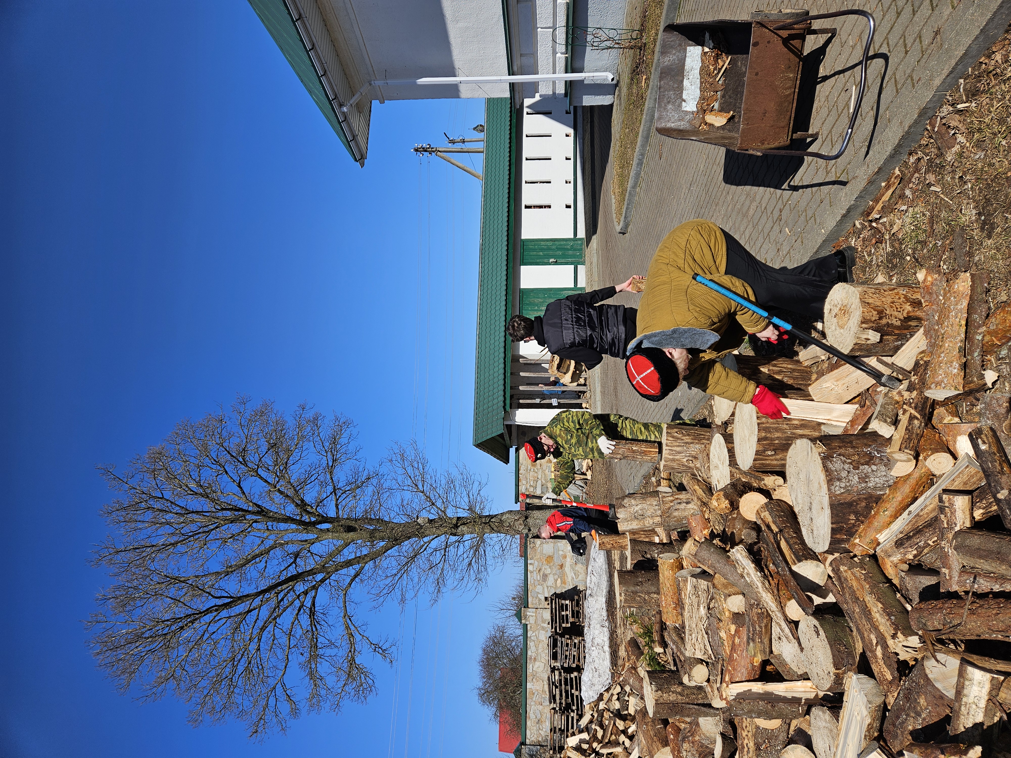 Затем казакам было благословлено потрудиться на дровнике по колке и укладке дров для монастырской кухни. Отрадно, что с нами была и молодежь.
